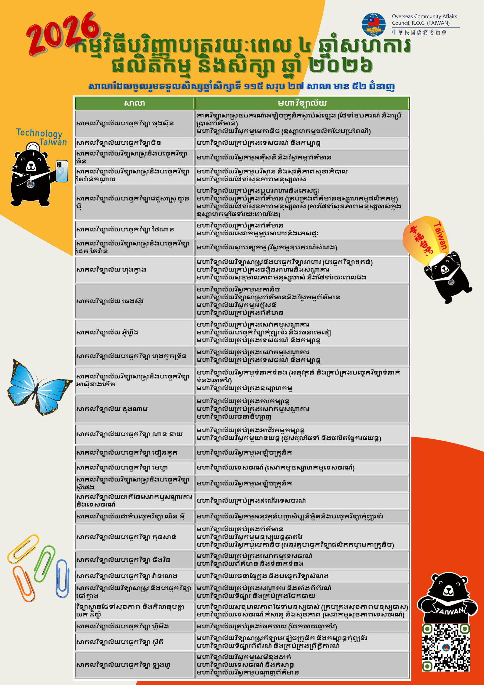 國立勤益科大、弘光科大、中臺科大、僑光科大、修平科大